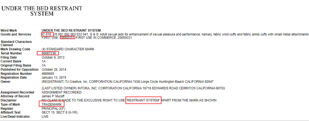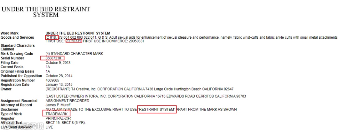 原告主要销售成人用品,床上束缚带,本次主要是同名文字UNDER THE BED RESTRAINT SYSTEM商标维权,不管是注册的文字商标还是关键词UNDER THE BED,未经授权使用都算侵权。
