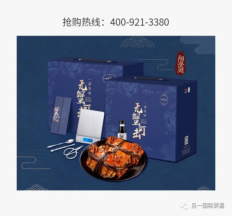 2020年且一国际推出全新高端大闸蟹礼盒,包装精美大方,以今年流行的高级蓝为主色调,代表优雅高贵,适合节日馈赠,商务往来,企业福利。