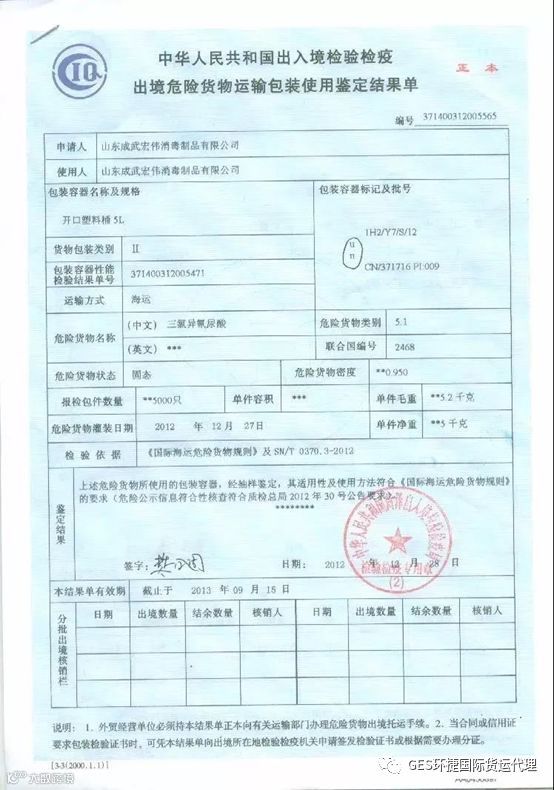 2、海事申报:需提供两证一书。申报后海事出具《危险货物适运申报单》。