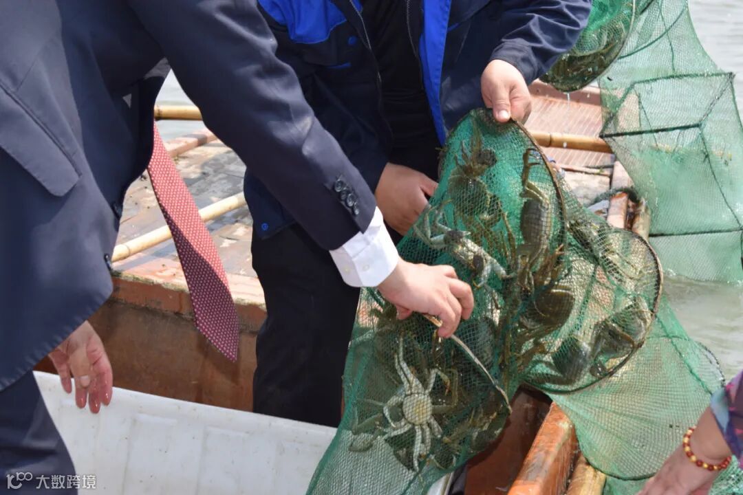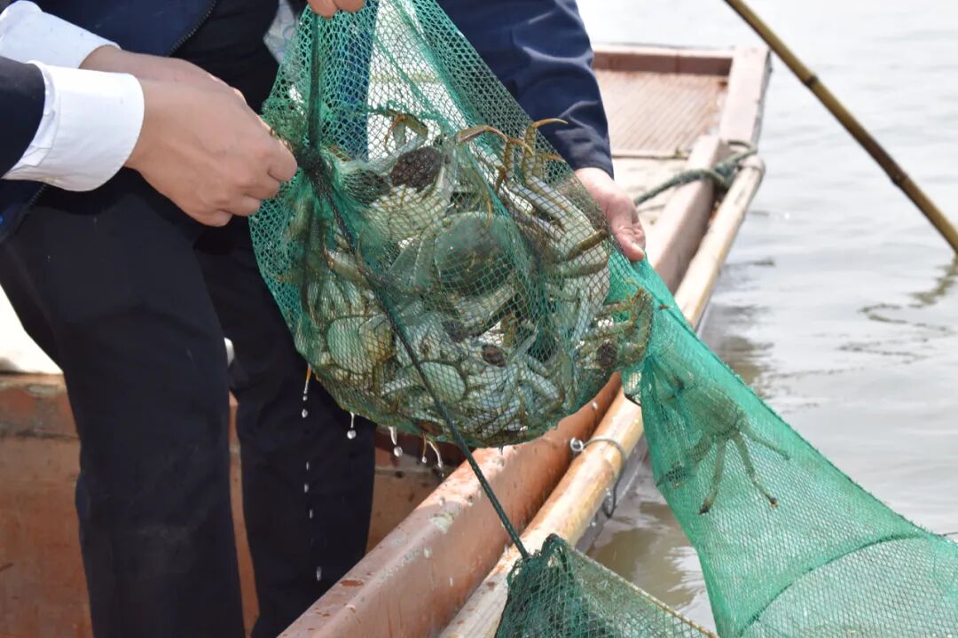 开湖仪式过后,在养殖场工作人员的带领下,嘉宾纷纷泛舟出湖体验捕捞大闸蟹;并且有专业的挑蟹师为大家介绍如何分辨一只肥美的大闸蟹!