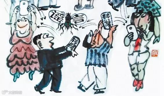 紧随微商其后的,是微信谣言传播方阵。他们是朋友圈经久不息、持续推陈出新的典型代表,他们不仅创造了《秋裤的阴谋》这种惊悚大片,也为生物进化理论开创了更多成果,如《小龙虾是一种虫子,千万别吃》、《肯德基养的鸡有八条腿》等具有未来科幻精神的故事;同时也颁布了诸如《新婚姻法颁布,女人可以有多个老公》多种未来的法律制度;他们也为医学进步做出了巨大贡献,成果包括《麦苗汁可以治癌》、《白酒啤酒混合更易导致肝癌》等多篇科学论文,并被多个养生类公众号大量刊发。