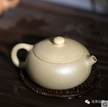 微俯视把茶壶三个面拍摄出来,顶部、侧面、正面展示在你的眼前。