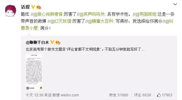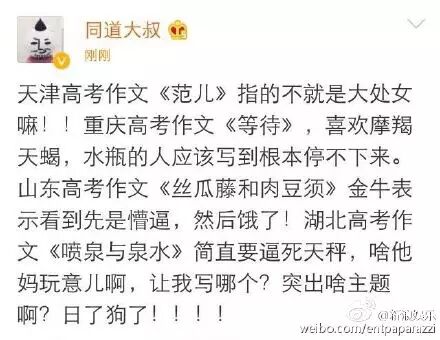 吐槽,段子,或者说恶搞这事还挺天赋至上的。除了本身的文字感觉,挑日子也是个技术活儿,比如满身G点的高考,比如高考作文题...