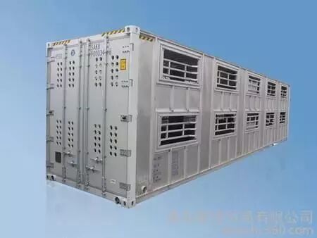 牲畜集装箱(pen container)这种箱子侧面采用金属网,通风条件良好,而且便于喂食。是专为装运牛、马等活动物而制造的特殊集装箱。