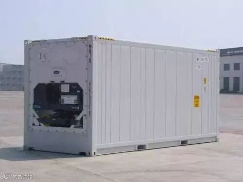 冷冻集装箱(reefer container)分外置和内置式两种。温度可在-60℃ ~ +30℃之间调整。内置式集装箱在运输过程中可随意启动冷冻机,使集装箱保持指定温度;而外置式则必须依靠集装箱专用车、船和专用堆场、车站上配备的冷冻机来制冷。这种箱子适合在夏天运输黄油、巧克力、冷冻鱼肉、炼乳、人造奶油等物品。