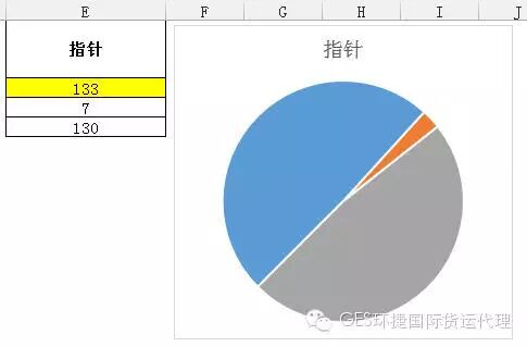 需要注意的是:需要将指针圆饼图的“第一扇区起始角度”也设置为225°,同时将最大两个圆饼图区域背景设置为无色或白色,即得到仪表盘指针。