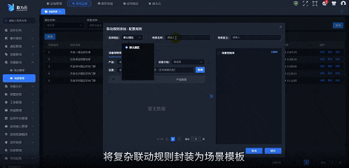 联动配置:支持跨设备、跨协议的规则设定,用户可通过可视化界面定义“触发-条件-执行”逻辑(如“传感器检测到异常→联动摄像头录像并推送告警”)。支持条件组合(时间、设备状态、环境参数等)与多动作编排,实现设备间的智能协作。