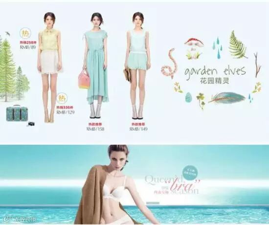 之所以说特色,就是产品首先要有特色。比方说主打棉麻(或棉麻占70%),那么就围绕棉麻做首页,任何跟棉麻有关的素材都可以用。像茵曼,背景是麻布,中式字体,中式排版。如果专做牛仔,就用牛仔布做底色,配合撞钉,纽扣,走线。做小而精,小而美,先做细分类目第一,再延伸。首先保证细分类目能赚钱,再扩展。不要一上来就全类目,那样你四面是敌人。