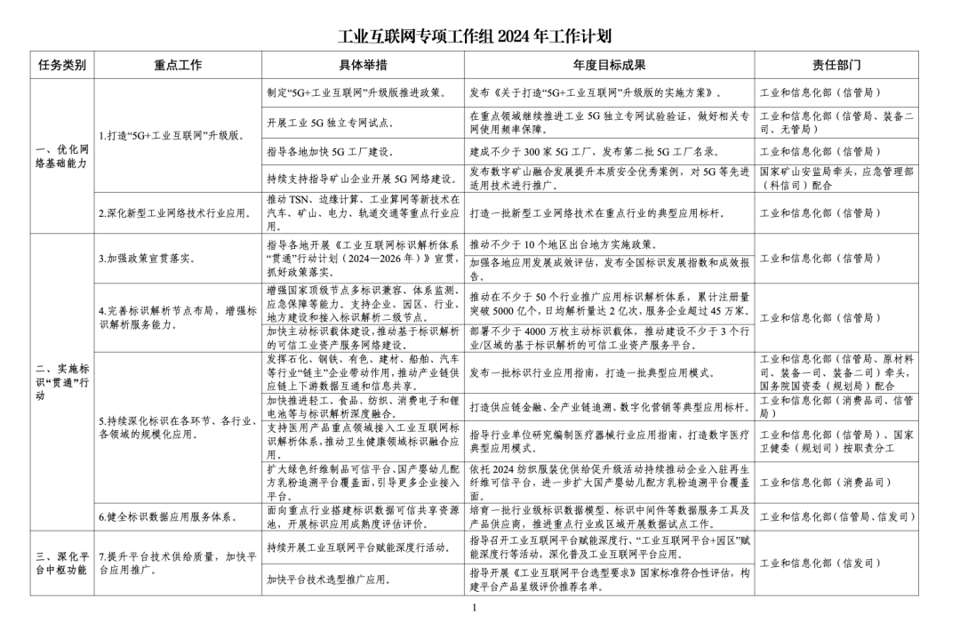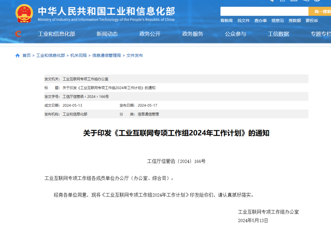 近日,工业和信息化部印发《工业互联网专项工作组2024年工作计划》,部署14类任务49项重点工作,全方位推进工业互联网规模化发展。