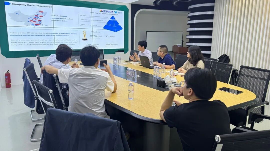 Amano代表一行通过现场参观交流,详细了解了敢为物联网核心技术及产品在智慧城市、智慧园区、智慧交通等多个领域的应用,并对敢为自主研发的物联网平台给与了高度评价和认可。在后续座谈中,双方就整合敢为物联网技术以推进韩国智能化项目落地开展深度交流,明确指出资源整合、优势互补、战略协同是推动项目进展的关键,共同规划合作方案,确保项目未来发展的连续性和高效性。