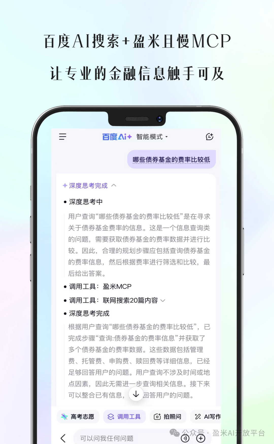 现在,通过“百度AI搜索 + 盈米且慢MCP”,用