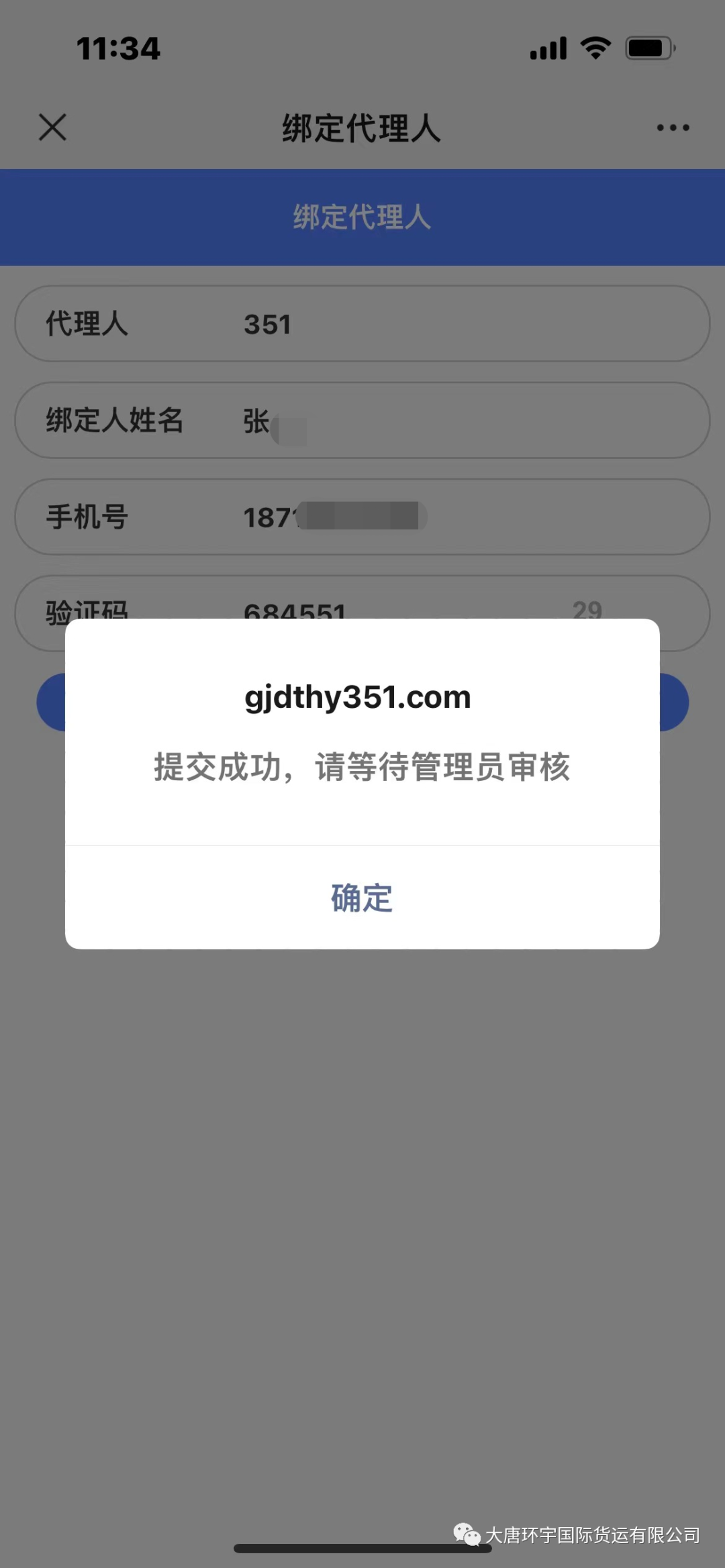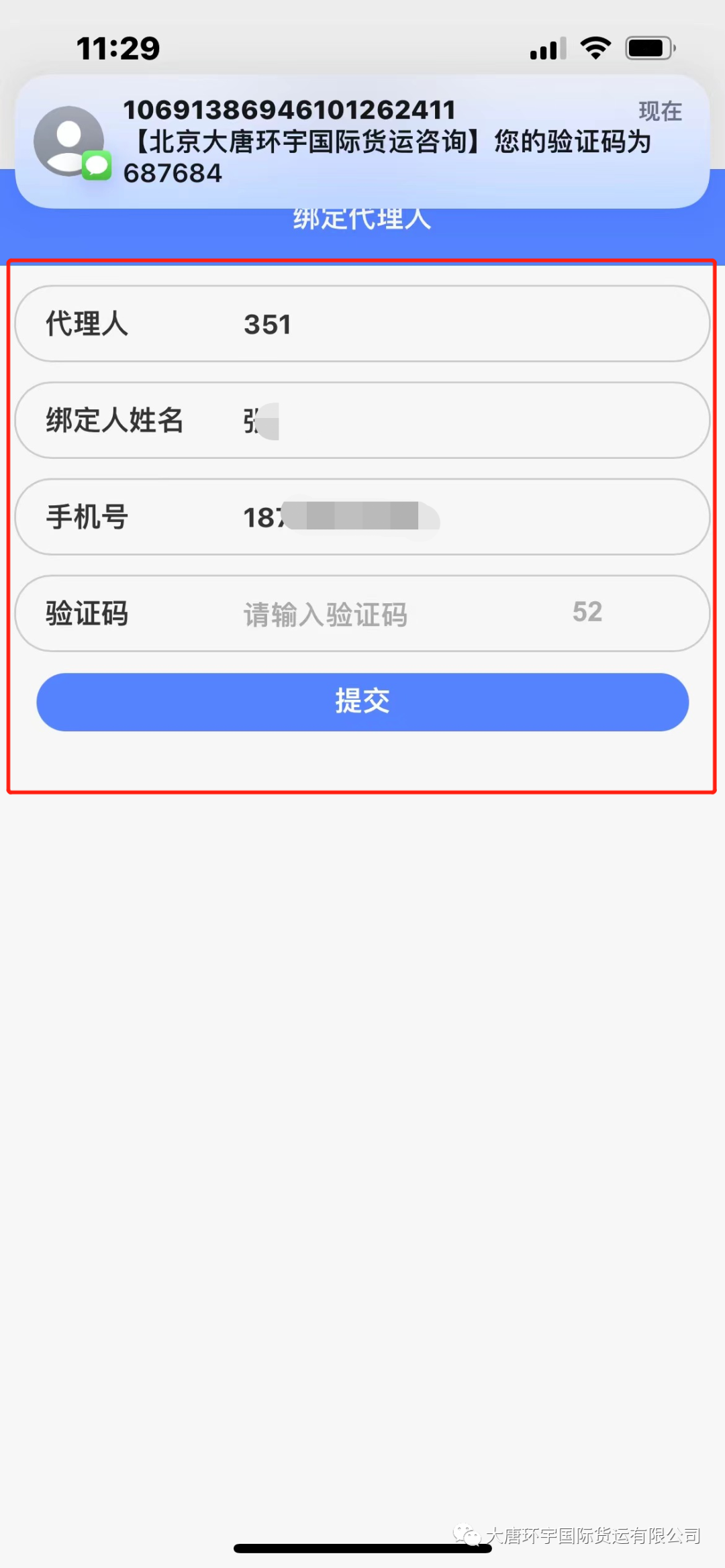 2、用姓名和手机号绑定代理人(代理人格式以结算单上的为准,一个手机号只能绑定一个代理人)这样操作更好的保护了各位客户货物的隐私~
