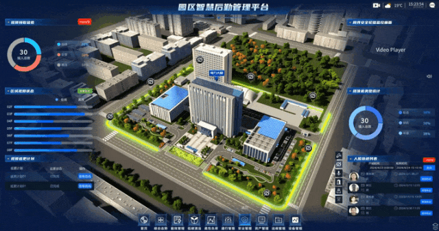 通过基于物模型的可视化技术,管理者可以实时查看园区内所有摄像头的监控画面,以及视频监控周界的状态。此外,系统还能够提供安保岗亭的实时定位和相关信息,以及安保人员的当前位置和状态,从而实现对园区安全状况的全面掌控。