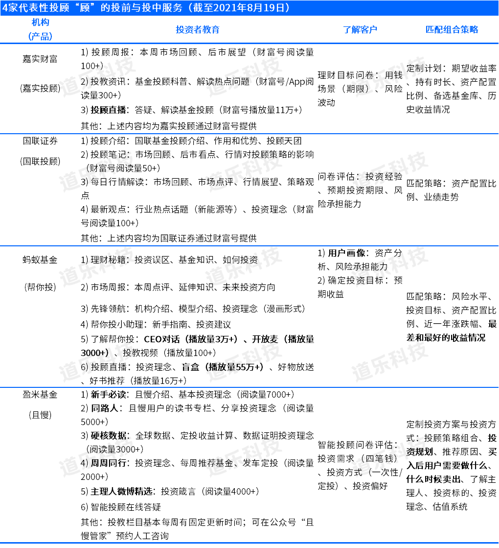 对于基金系和券商系投顾来说,如何充分运用第三方基金销售机构所提供的平台、技术和工具做好“顾”,可能是未来需要继续思考和探索的问题。