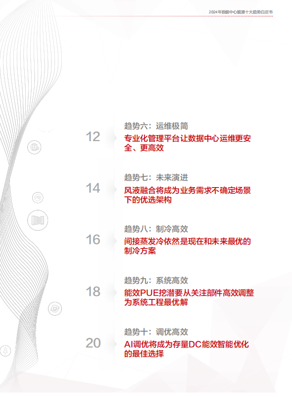 近日,华为数字能源与产业领袖、技术专家和行业客户基于深入研讨,并结合自身的深刻洞察和长期实践,发布《数据中心能源十大趋势白皮书》,希望为促进数据中心行业健康发展提供参考,贡献智慧。