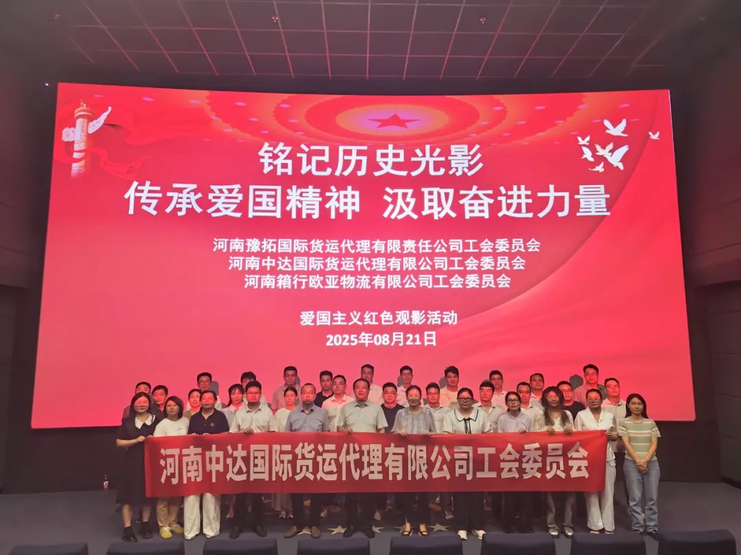 为纪念中国人民抗日战争暨世界反法西斯战争胜利80周年,8月21日,中达公司工会携手豫拓、箱行欧亚公司工会联合举办“铭记历史光影,传承爱国精神,汲取奋进力量”主题观影活动,组织全体职工观看爱国主义影片《南京照相馆》。