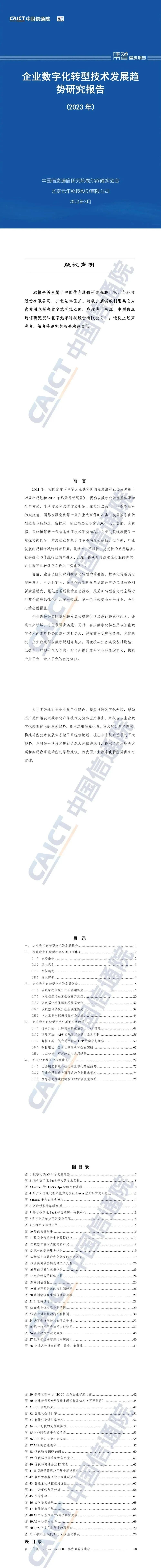 为了更好地引导企业数字化建设,高效推进数字化升级,帮助用户更好地获取数字化产品技术支持和应用服务,中国信息通信研究院(简称“中国信通院”)泰尔终端实验室联合北京元年科技股份有限公司在近日举办的“高质量数字化转型创新发展大会”上联合发布了《企业数字化转型技术发展趋势研究报告(2023年)》。