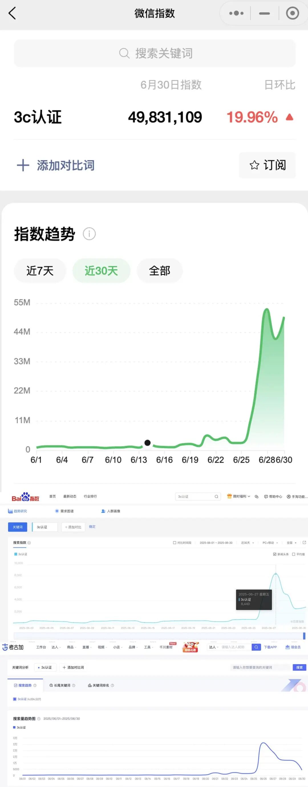 ●微信指数:6月30日,“3C认证”搜索量达 4983万,近乎历史最高;