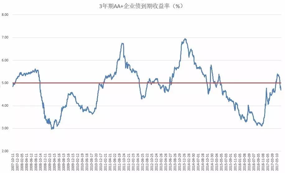 其实并不是。根据历史数据,3年期AA+企业债到期收益率高于5%的概率是45%。也就是说,这样的机会并不是特别稀缺。对于普通投资者来说,我建议还是稳健点。咱们可以用“守株待兔”的方法来投资。有机会,毫不犹豫的出击,没有机会,就安安心心的趴在货币基金里赚取确定的收益。