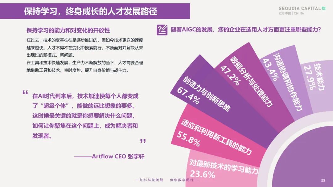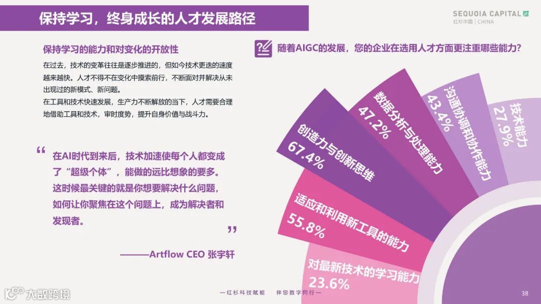 技术的爆发式发展对人才市场提出挑战,一方面用人市场在高级和稀缺岗位中难以找到合适的新型人才,另一方面不少原有技术体系下培养的工程师和管理者在新环境下却感受到压力和焦虑。交叉学习能力、创新能力、协同能力、数据洞察能力会是未来企业选用人才中最重视的方向。