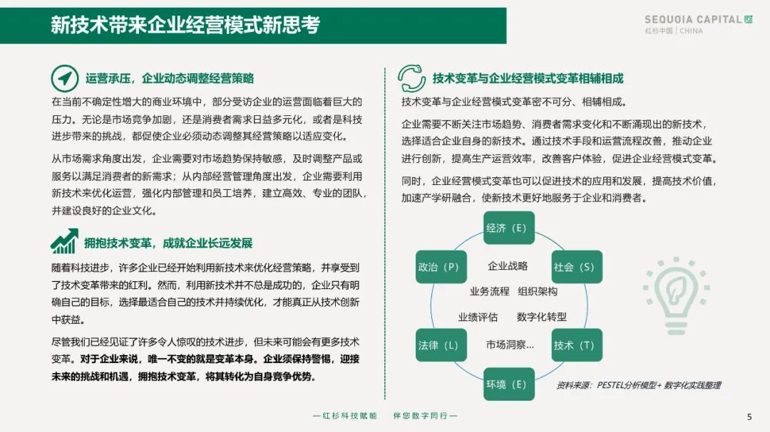 面对宏观经济和技术革新的新环境,企业重新审视当前业务模式和价值链结构,特别需要重视新技术推动下生产关系和生产资料的变化导致的产业结构重组和新物种的出现,重新判断PMF(产品市场匹配)。一些科技公司表示正在以高度的警觉性和敏捷的反应随时调整公司战略方向。