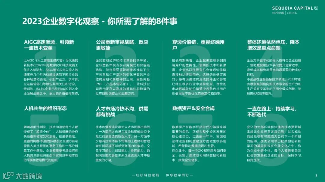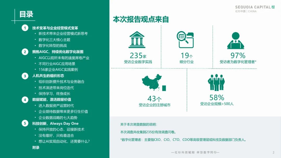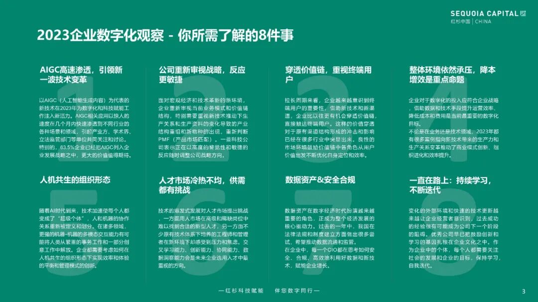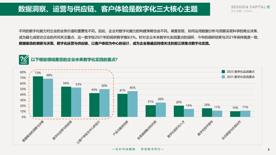 回归第一性原理,为企业的客户创造真实的价值和更好的体验才是企业的根本。新技术拓宽了企业数字化的版图,同样也为企业解决终极问题提供了新思路和新方法。今年红杉中国调研了235家企业数字化负责人,结合团队最新的观察和思考整理成册。