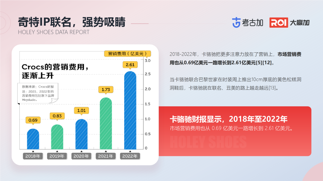 为了扭转消费者觉得洞洞鞋“不够酷”的形象,Crocs加大品牌建设与营销投入,不断与知名艺术家、品牌、明星跨界联名合作。