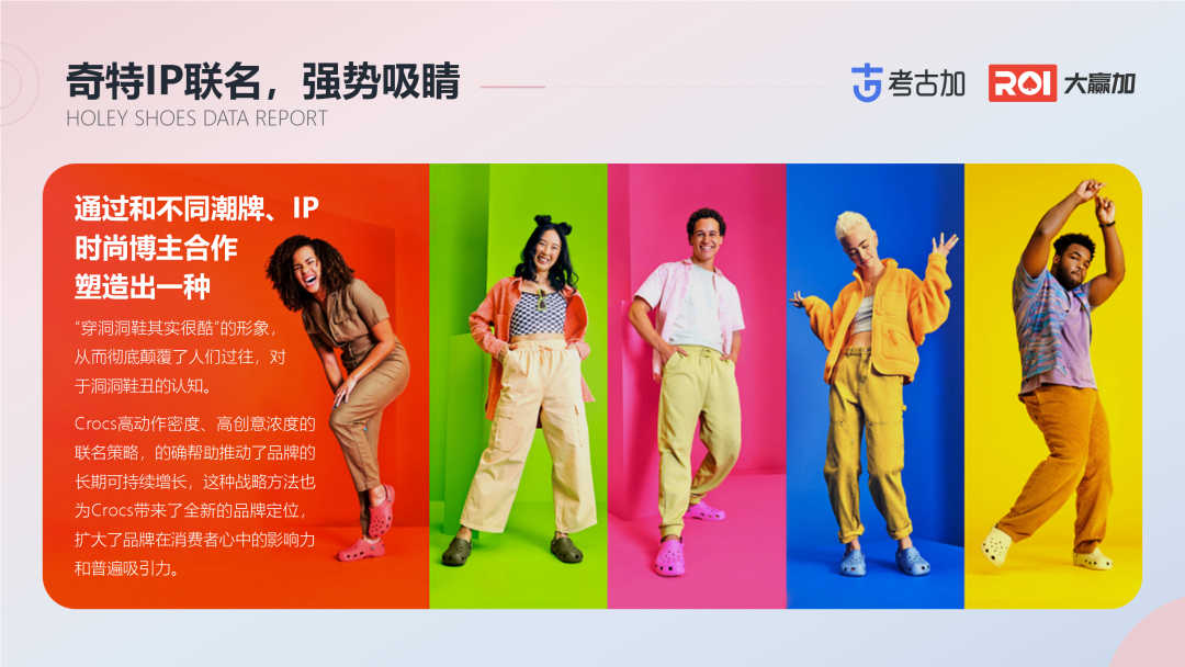 通过和不同潮牌、IP时尚博主合作塑造出一种“穿洞洞鞋其实很酷”的形象,从而彻底颠覆了人们过往,对于洞洞鞋丑的认知。