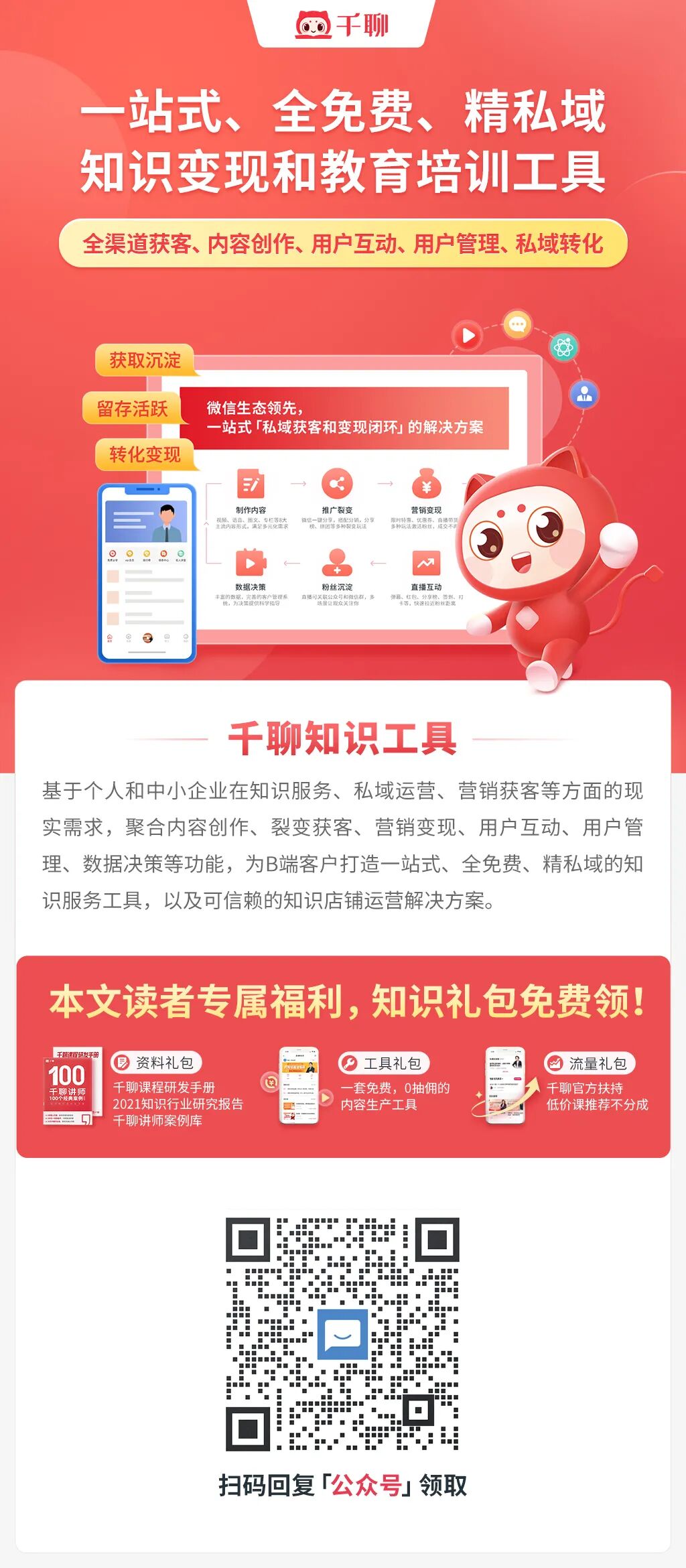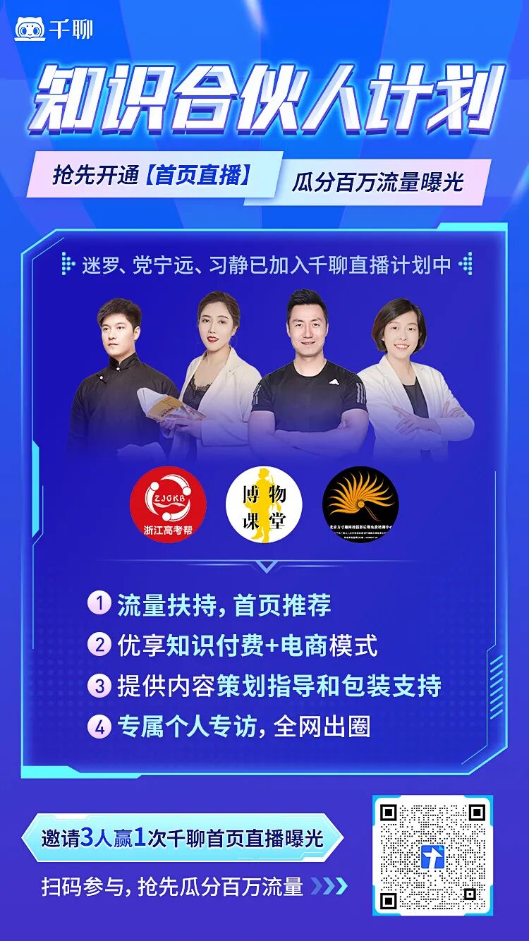 平台推广:优质课程将额外获得千聊平台流量推广,涵盖banner页、板块推荐、开屏等核心资源位展示