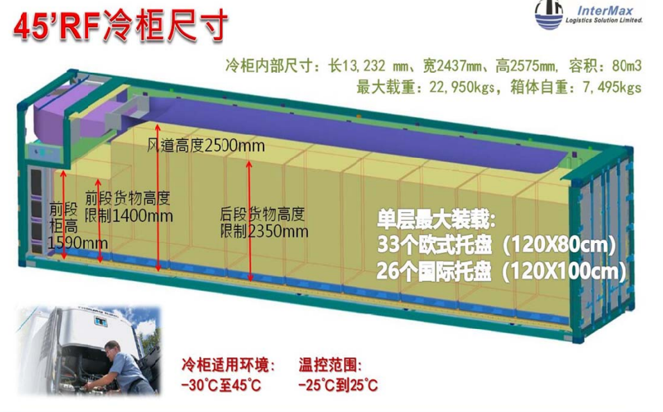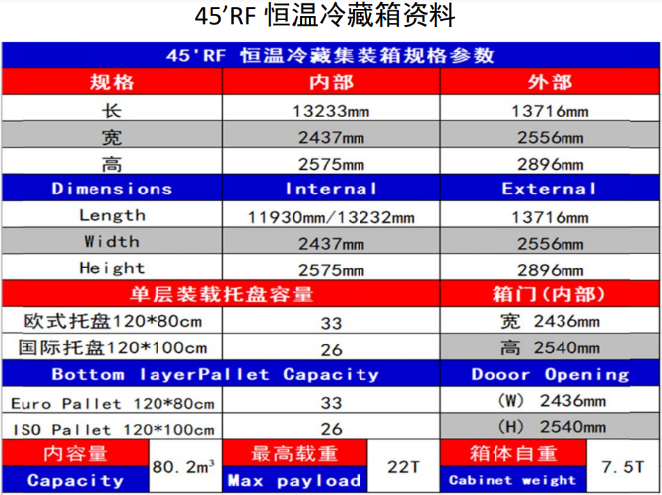 45尺冷代干:80m³ / 22T