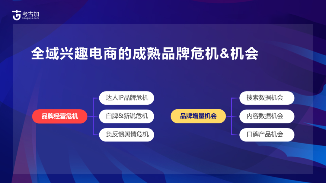 兴趣电商从内容场延伸到更多场景,满足用户多元场景需求。在多元场景下,品牌在发力全域兴趣电商时,对于成熟品牌的危机和机会点是什么?