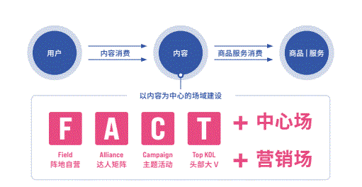 • 2022年5月,抖音电商升级了“FACT+全域经营方法论”,增加中心场(指商城和搜索)、营销场两大场景。