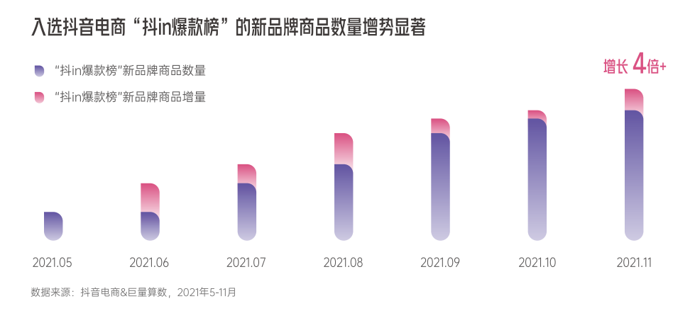 数据显示:抖in爆款榜上入选的新品牌商品数量增长已超4倍。