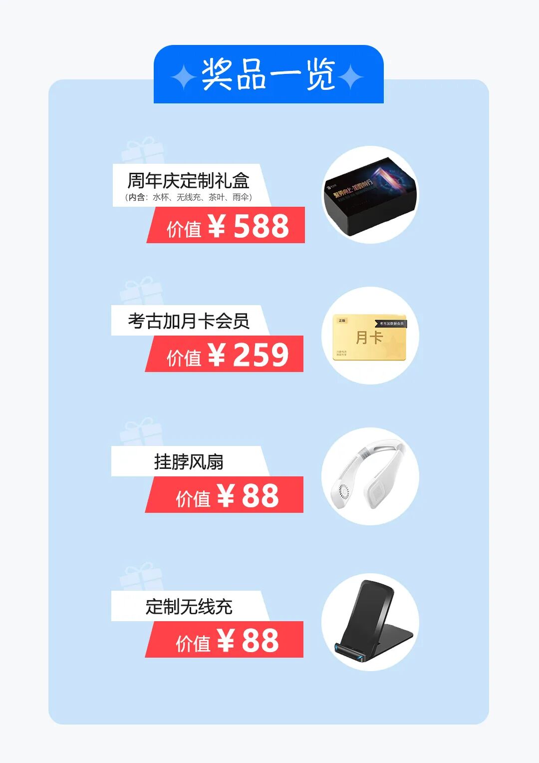 考古加一周年生日快乐!聚势向上,加数前行!【考古加周年庆暨2022兴趣电商增长大会】于7月22日晚20:00视频号直播。周年庆活动期间,还有考古加会员、账号诊断服务、周年定制礼盒等诸多礼品相送哦。