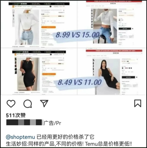 有人专门把Temu和shein、亚马逊等美国其他电商平台上面的同类商品做了价格对比,发现Temu 确实有着无可比拟的价格优势。