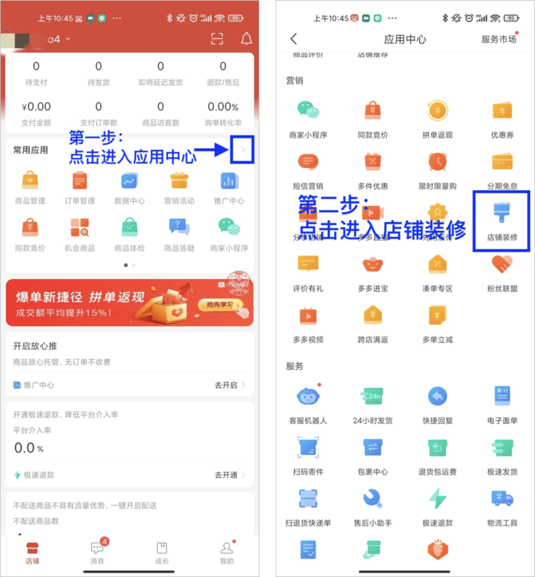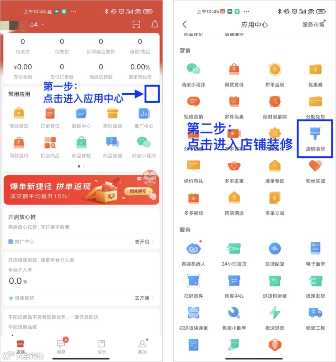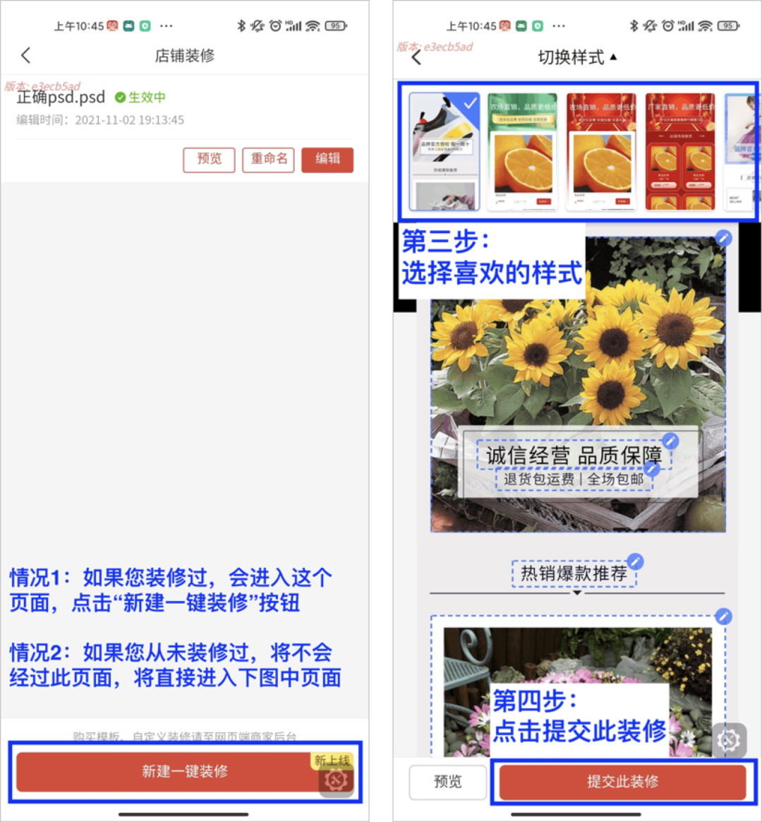路径:应用中心 - 店铺装修 – 新建一键装修
