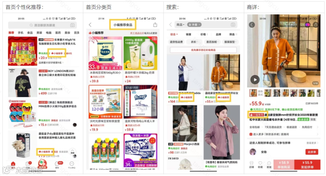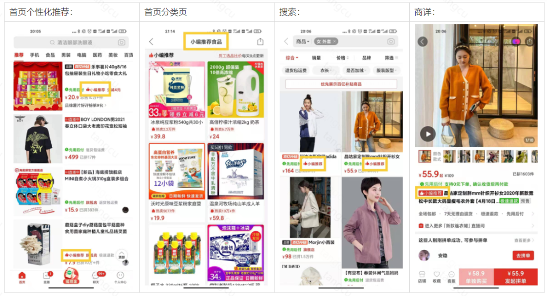 精选站内优质爆品,进行打标,并在用户端进行展示,以此提升用户信任感,促进商品转化。