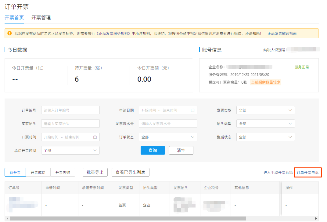 2)因其他特殊原因,商家在系统开票之前提前给消费者额外开具了发票,开完后可以走申诉功能。