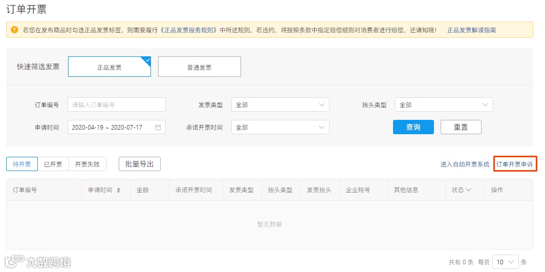 1、平台对每笔订单的承诺开票时间有严格规定。正在审核订单如果即将达到履约时间,系统不会停止计时,若商家因为等待申诉结果导致违约需要商家负责。