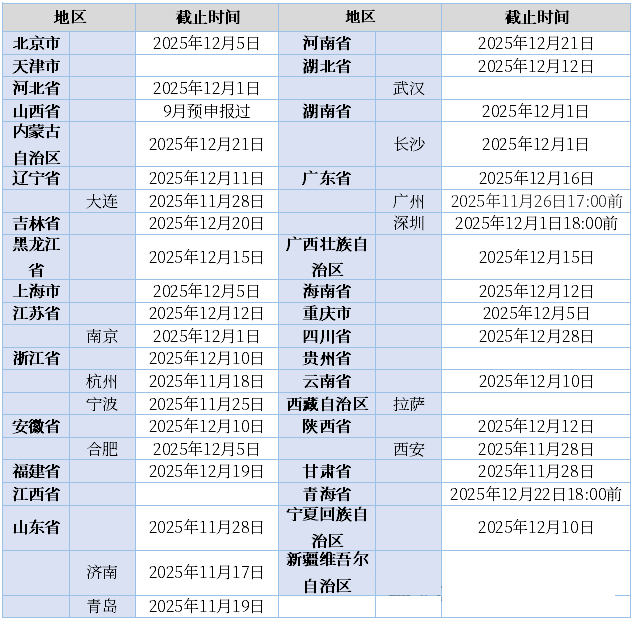 推荐单位报送截止日期为2026年1月23日,但申报企业需要注意各推荐单位的截止时间,肯定会早于2026年1月23日,下图整理了各地方局通知中的截止时间!