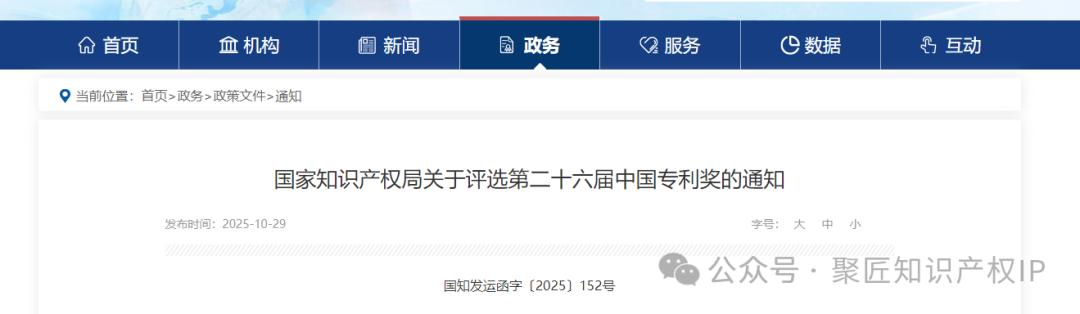 根据以往聚匠协助企业成功申报专利奖经验,如果您有意申报第26届中国专利奖,从现在就必须开始行动了!注意2026年1月23日截止!聚匠深耕知识产权行业十余年!国知局代码 32339 ,代理专利超 12000 件。关于专利奖您有哪些不了解的,可以联系聚匠知识产权为您提供专业指导。