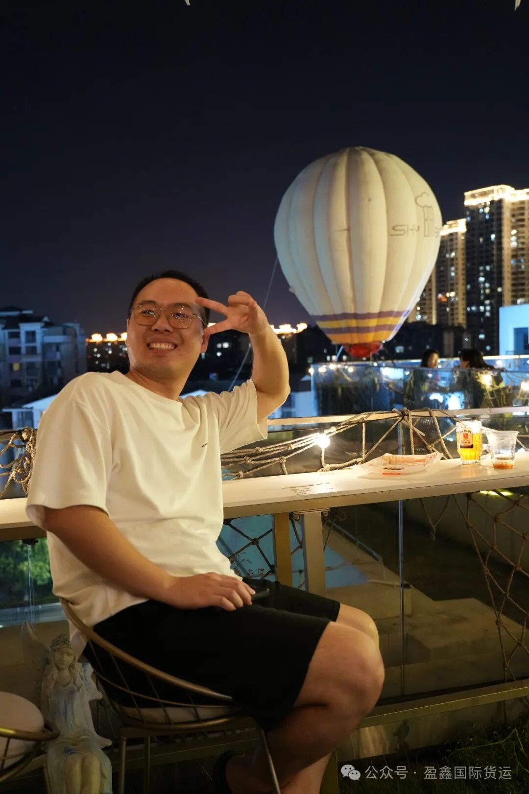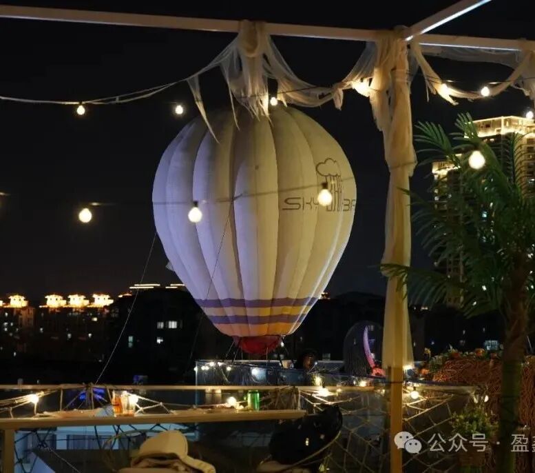 晚风轻起的夜晚,在有热气球的天台上,惬意美好。