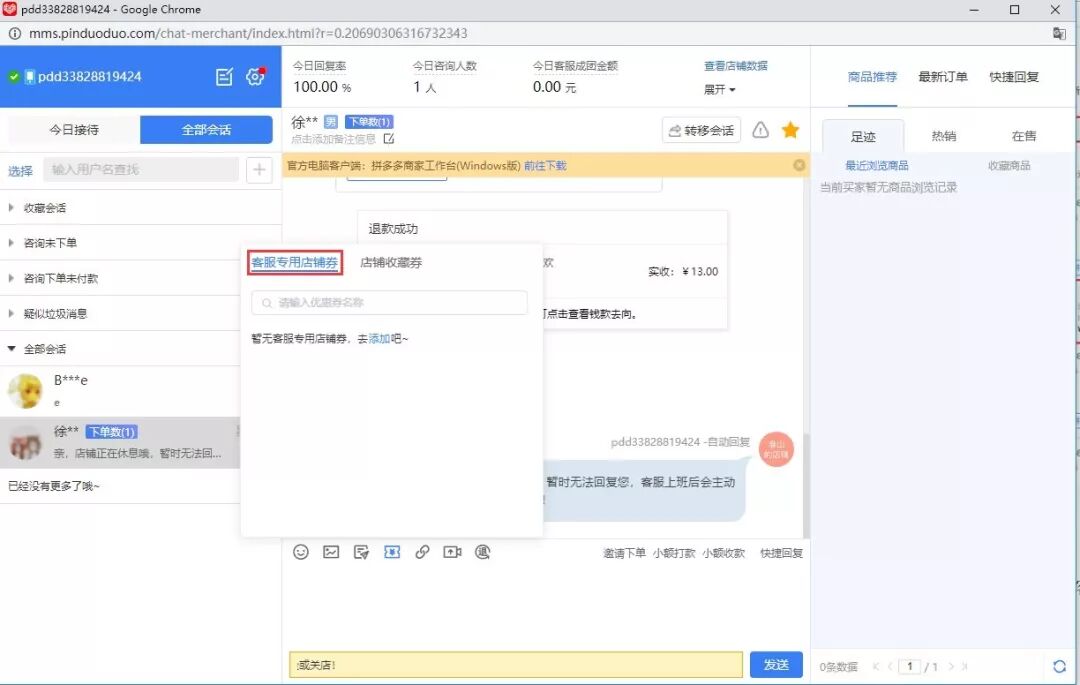 客服优惠券催付