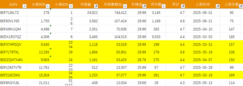 上新阶段,我们希望通过对竞对链接的拆解来预估自己投入的资源。这时候只是一味的选择头部链接进行拆解,可能会忽略头部链接的转化率更高以及品牌效应等因素的影响,导致最后的预估结果出现较大的偏差。这时候可以选择新品黑马、BSR排名较前的同类竞品(功能、价位较为接近的)。头部ASIN是我们可以看到的上限,但是在进行精细化分析的时候,选择和我们自身实力和产品更相似的竞对,分析结果的参考意义更大。
