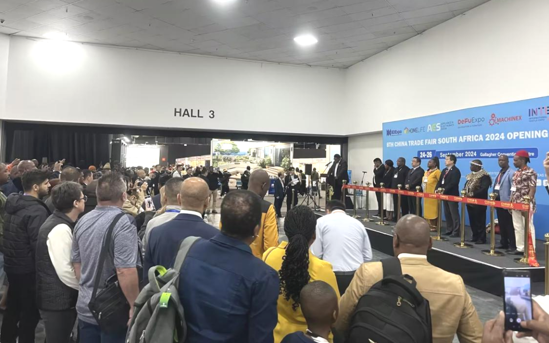 迪帕莱森市市长Busisiwe Khanye女士在开幕式上致辞,正值南非庆祝国家文化遗产日及30年民主与自由之际,对展会的成功举办表示祝贺。她指出,自南非加入金砖国家后,中南贸易额显著增长,2022年已突破400亿美元大关,中国已成为南非的最大贸易伙伴。Khanye女士热忱欢迎更多中国企业前往南非,特别是迪帕莱森市投资,以促进当地制造业的繁荣发展。
