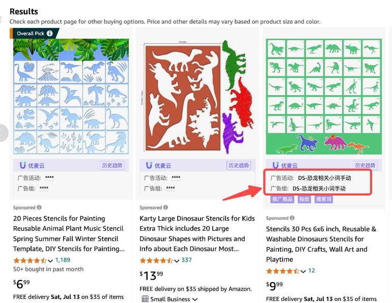2. 第二步:查询验证。现在亚马逊对于前台广告位的Adid隐藏了,需要借助工具才能查看得到