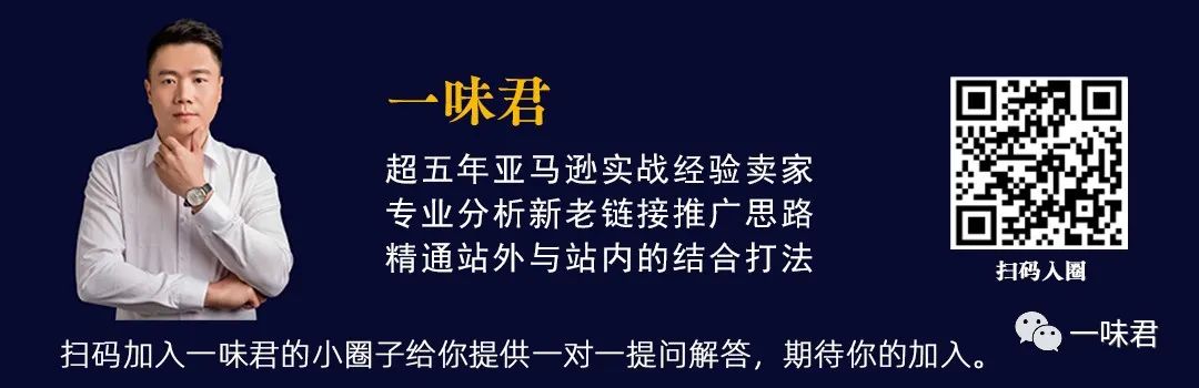今天分享到这里,后面会写很多亚马逊干货文章,喜欢我的文章的老铁,关注一味君公众号即可。老铁们,可以的话,帮忙点点赞和点点在看。对文章有不懂的地方可以在文章底部留言,然后我来回复老铁。