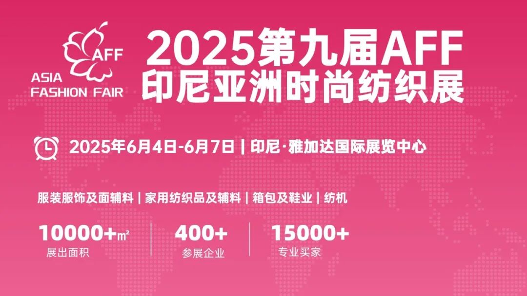 2025年,AFF&INTEX组委会将在印尼举办两场纺织展,分别于2025年6月4日-7日以及2025年11月26日-29日举行。展品范围涵盖纺织服装各细分领域,包括面辅料、纱线、服装、配饰配件、家纺、箱包、鞋、纺织机械等。