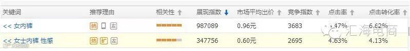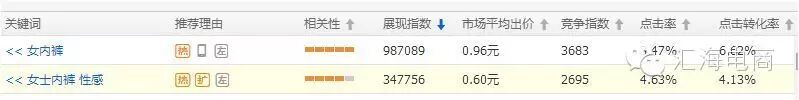 首先是在添加关键词的时候有展现指数点击率。这是行业的标准,你们在操作的时候,首先刚上的宝贝,出价到市场的平均点击单价,然后看位置;接着先测试一天,不要人为的操作——你就知道你位置的展现是多少,那么你接下来的点击率要高出行业的标准。
