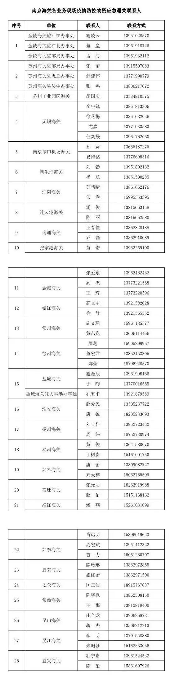 附上部分口岸海关假期值班汇总